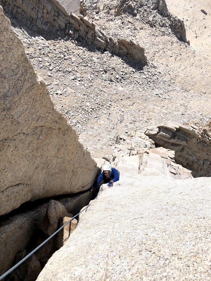 R.J. Secor describes Russell as “the finest peak in the Mount Whitney region.” Presumably, that includes Mount Whitney! I would agree with Secor, especially if you are a rock climber thirsty for climbs above 5.7 on some of best alpine granite imaginable. But even if you aren’t into technical rock climbing, the uber-classic East Ridge (3rd class) is undeniably one of the best scrambles in the Sierra. Part of what makes this ridge walk so great is how improbable and exposed it is. Indeed, many folks turn around shortly after beginning their foray onto the wildly exposed spine of this mountain, lacking confidence in their routefinding. To be fair, it took me more than a few goes to feel like I’ve got my own routefinding dialed on this thing.